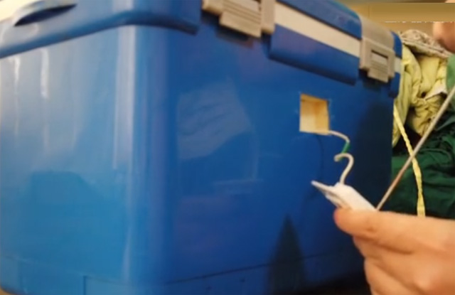 醫(yī)院輸血、送血,用血液中轉(zhuǎn)箱來(lái)周轉(zhuǎn),它是一個(gè)帶保溫功能的箱子。箱子里面內(nèi)膽可能有一些泡沫之類的保溫材料。箱子的前面有一塊液晶顯示屏,用來(lái)顯示箱子溫度數(shù)據(jù)。不顯示的話就是電池沒(méi)了需要更換電池。箱子的扣子打開(kāi)后,正常的話是放冰袋之類的東西,它的目的是可以讓里面的血液保持在一個(gè)恒定的溫度。因?yàn)槲覀冋5难旱臏囟刃枰娣旁诎藬z氏度左右。拿走上面的格子槽,可以看到箱體里面的大空間來(lái)存放血液制品。根據(jù)血液、血漿、血小板不同材料要求來(lái)進(jìn)行溫度調(diào)節(jié)。溫度不會(huì)受外界影響變化。